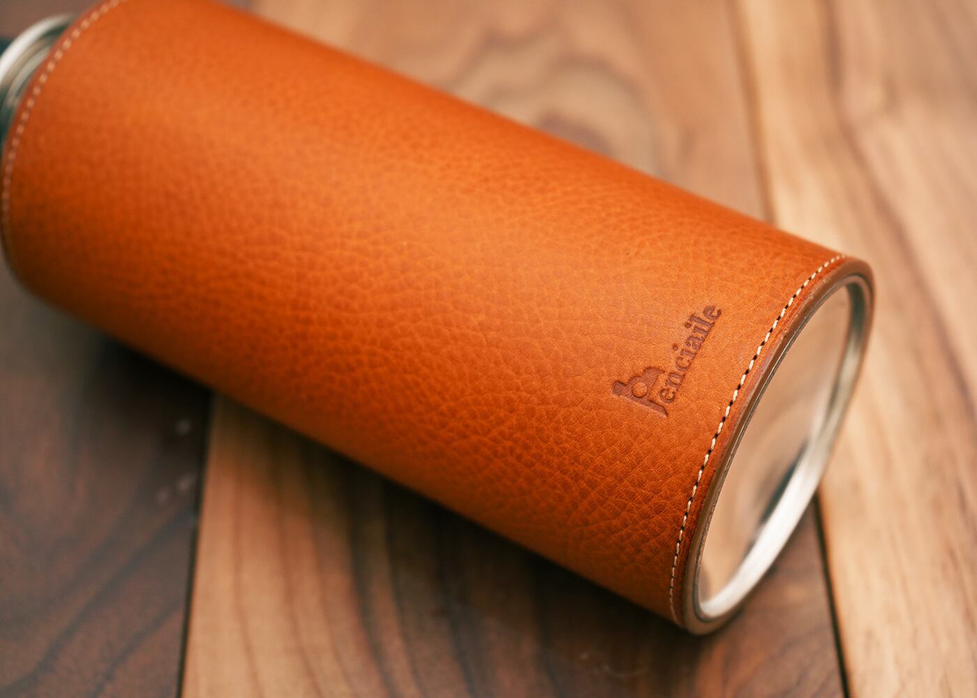 サイズにピッタリと合わせた本革CB缶カバー。